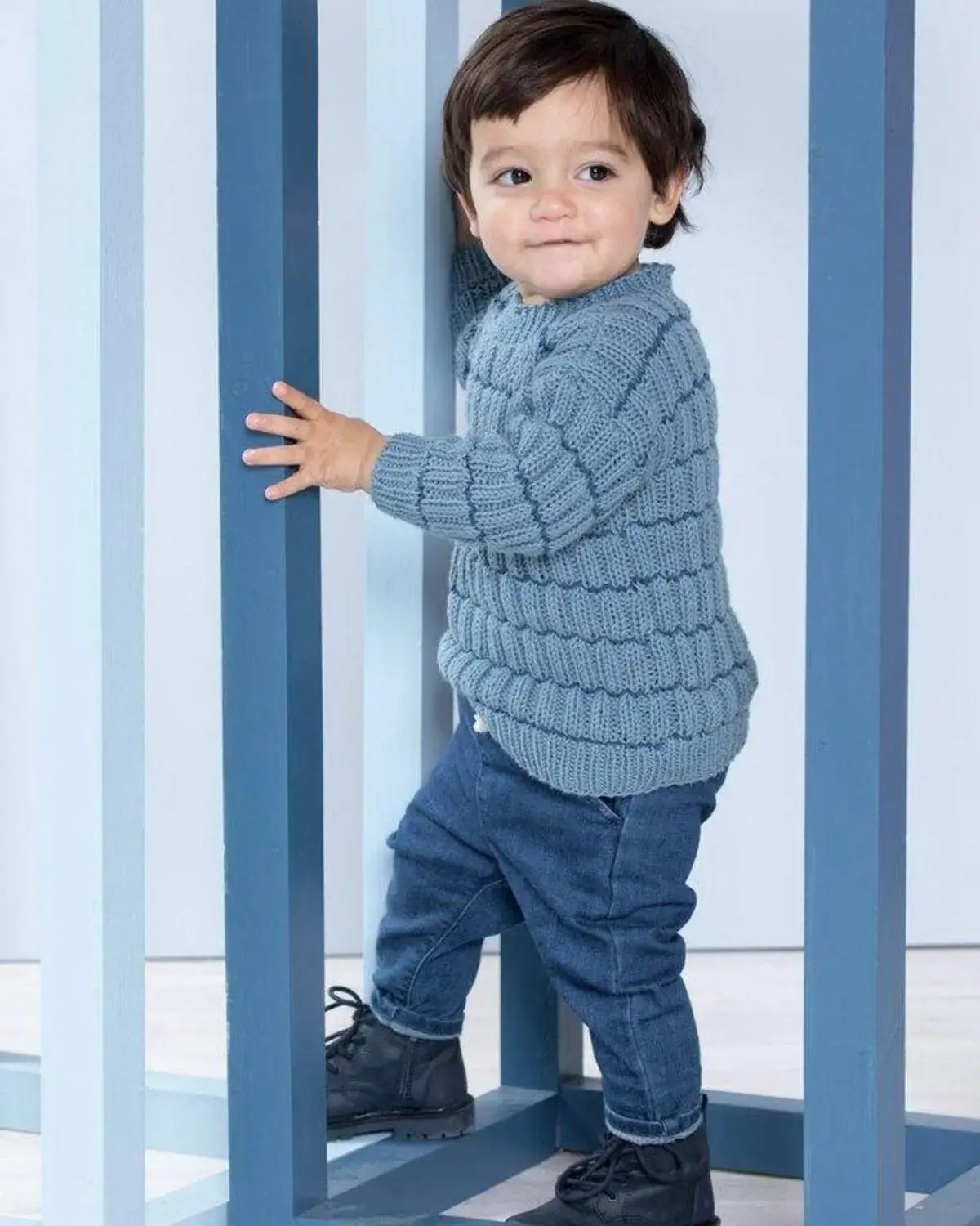 Boble Genser, Lys Denim fra Dale Garn er et flott tillegg til garderoben din og passer perfekt for både hverdagsbruk og spesielle anledninger. Gi deg selv eller dine kjære en spesiell og personlig gave ved å strikke denne vakre genseren. Du vil elske å ha den på deg og få komplimenter fra andre.