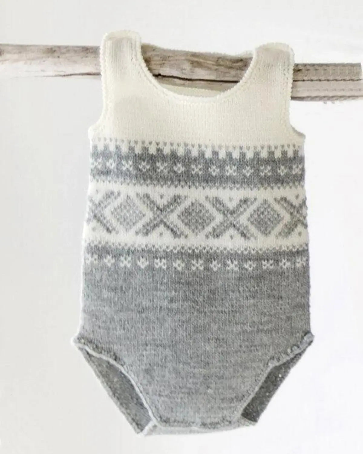 Få håndverksopplevelse og skap et vakkert plagg til ditt barn med Cortina Body i Lys Grå Melert fra Dale Garn. Denne klassiske bodyen vil være et kjært og varmt plagg til din lille.