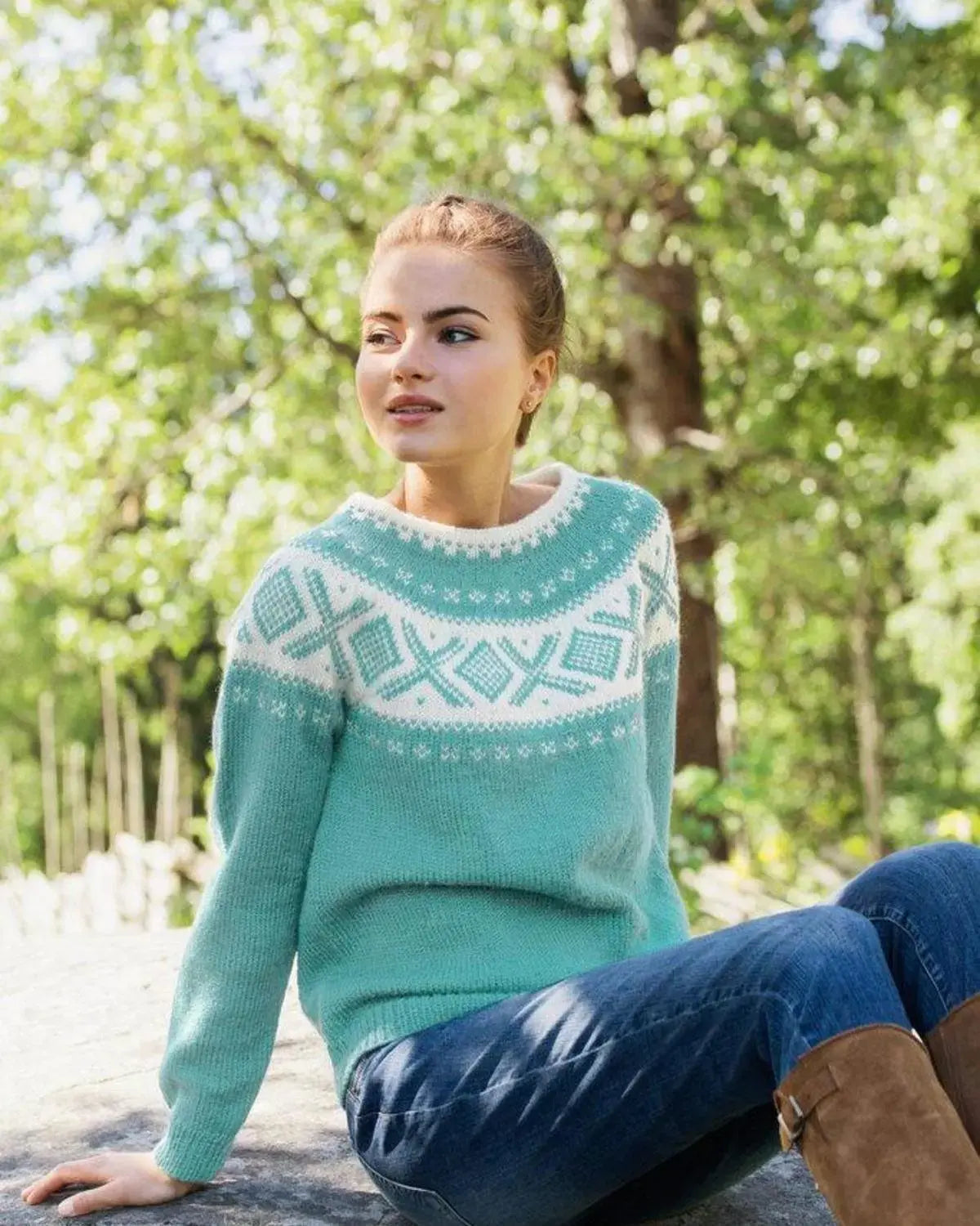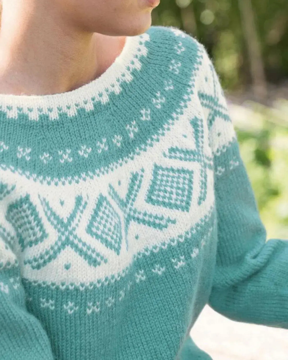 Cortina Genser er en vakker og stilfull genser designet av Dale Garn. Den er inspirert av naturen og den vakre sjøgrønne fargen gjør genseren perfekt for enhver anledning.