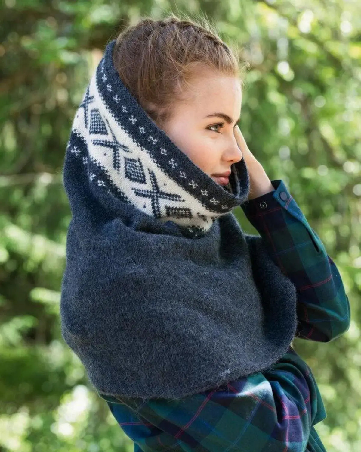Cortina Hette-hals i Indigo Melert fra Dale Garn er en fantastisk kombinasjon av stil og funksjonalitet. Den er designet av Anne-Kirsti Espenes og Bitten Eriksen, og er perfekt for de kalde vintermånedene.