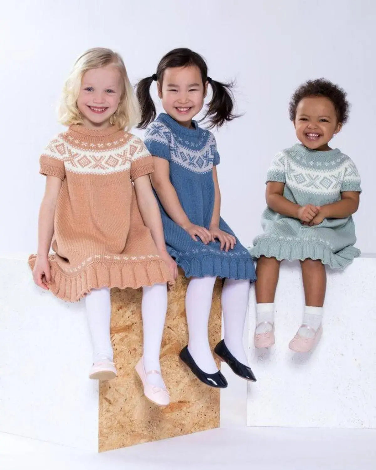 Kjolen er strikket i en kombinasjon av Dale Garns Cortina- og Alpakka-garn, noe som gir den en myk og behagelig følelse. Cortina-garnet gir en god struktur og holdbarhet, mens Alpakka-garnet gir kjolen en luksuriøs og elegant look.