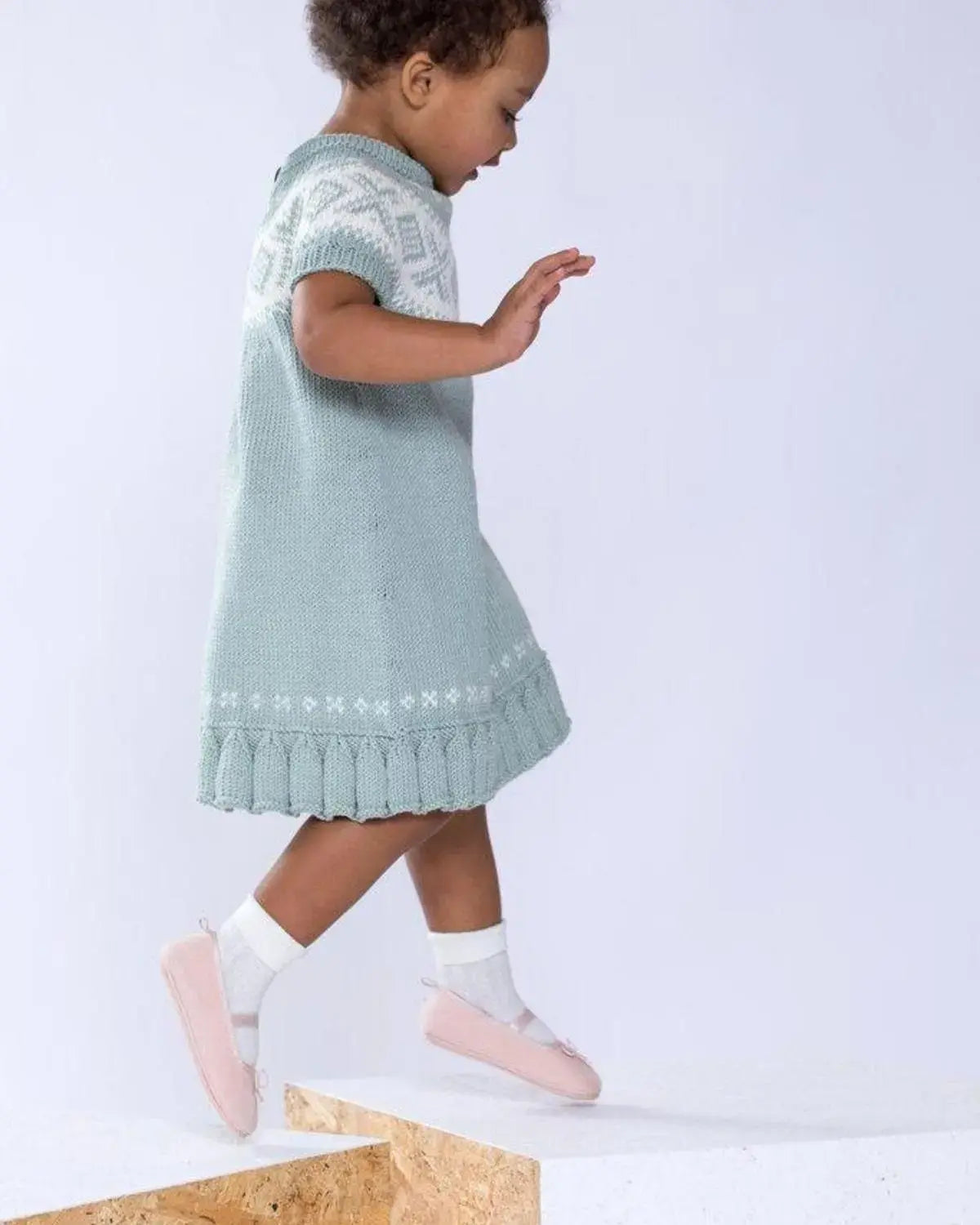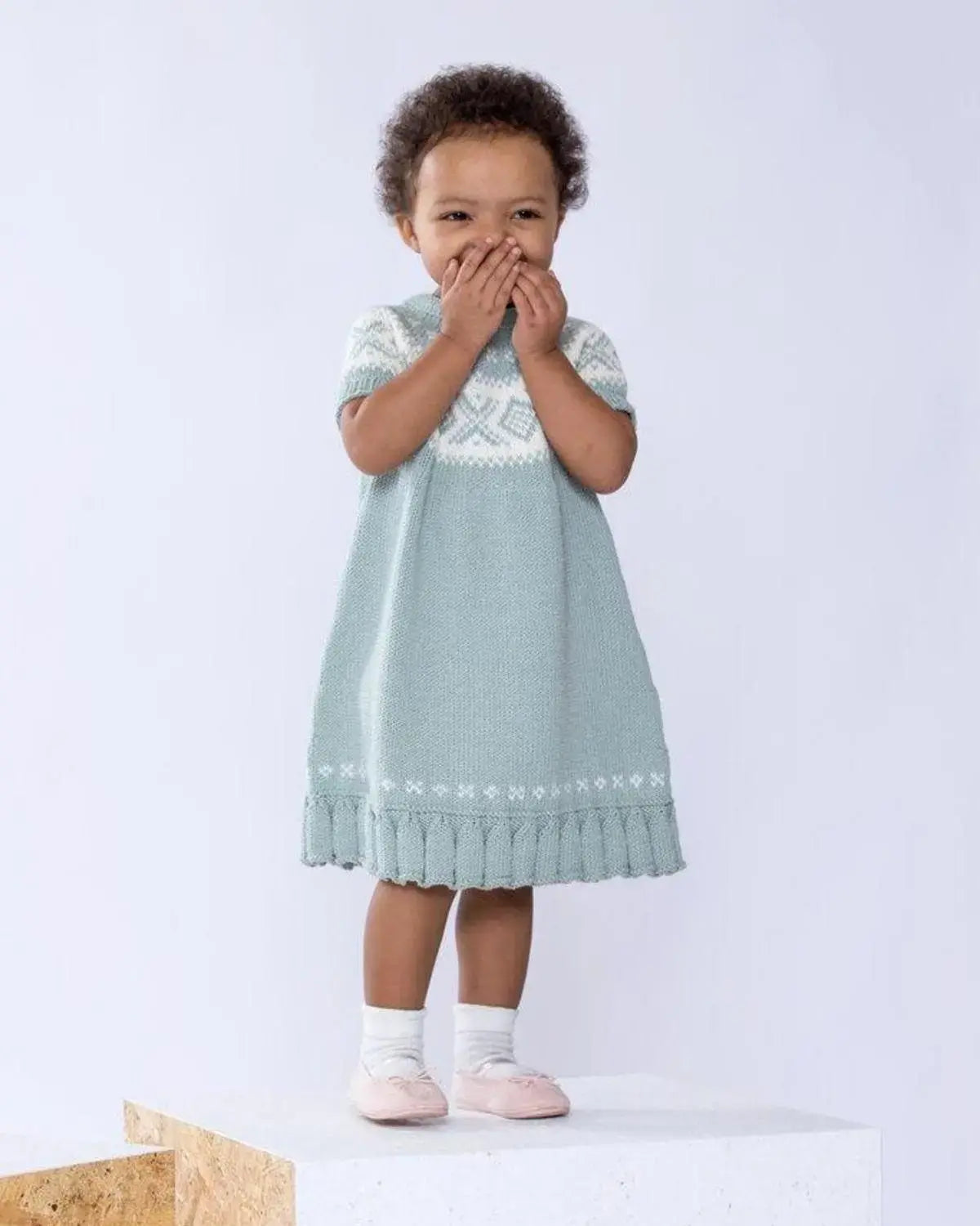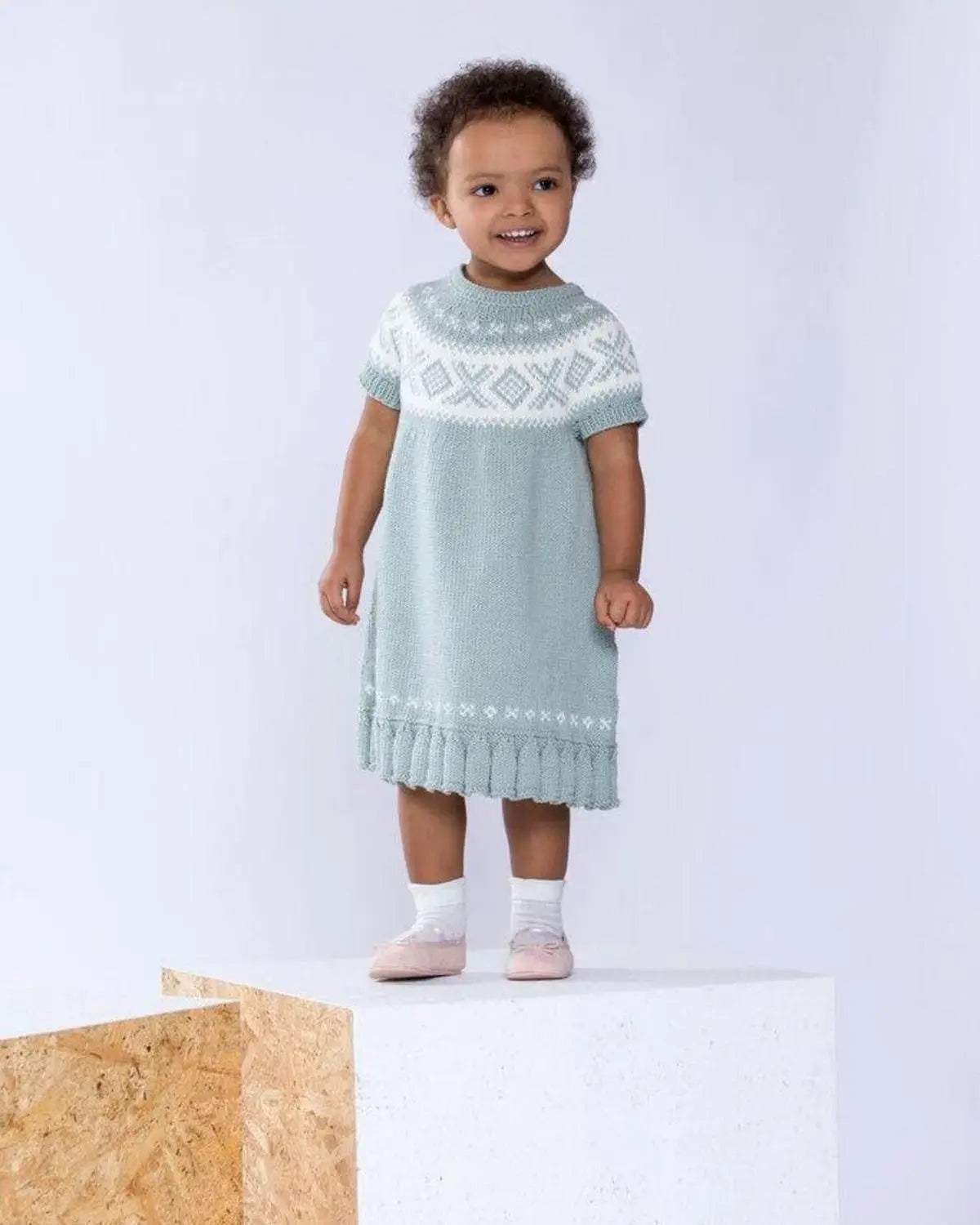 Cortina kjolen i lys jade er en nydelig og trendy kjole fra Dale Garn. Designet av Anne-Kirsti Espenes og Bitten Eriksen, er denne kjolen et flott valg for de som ønsker en moderne og feminin stil.