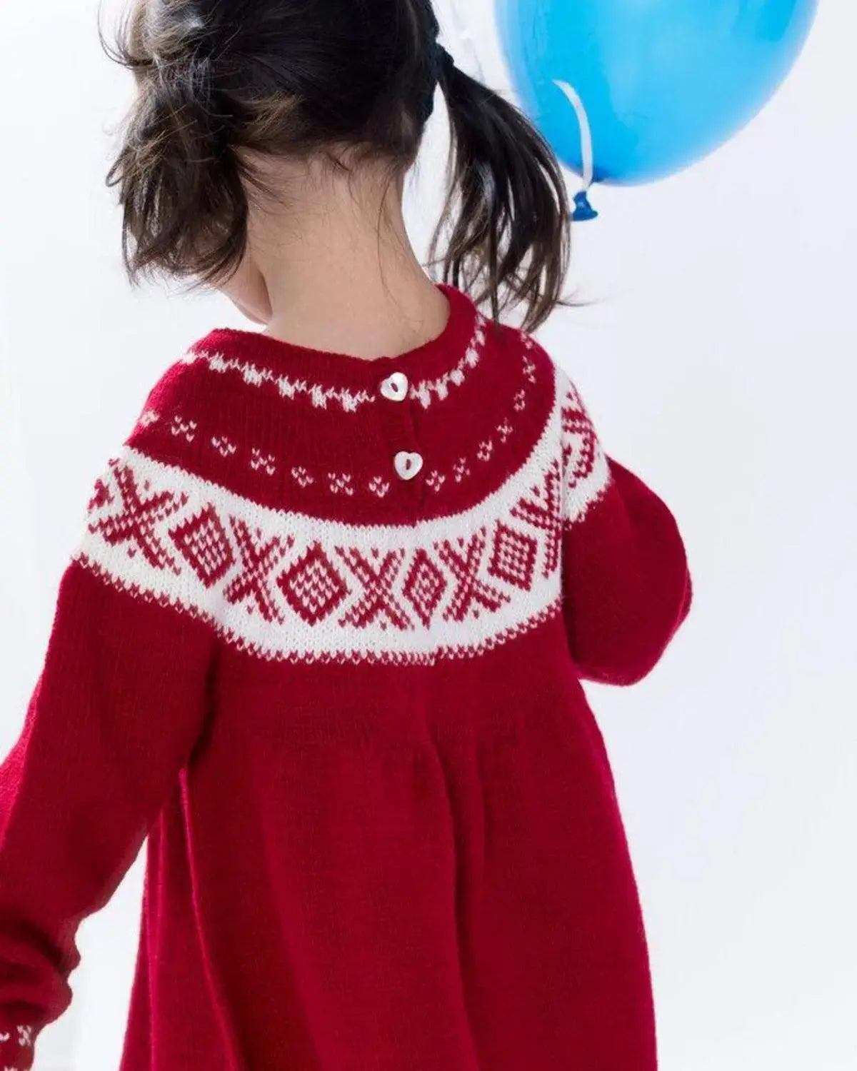 Cortina Kjole, Rubinrød, er en elegant og tidløs kjole designet av Anne-Kirsti Espenes og Bitten Eriksen fra Dale Garn. Den er laget av luksuriøst garn av høy kvalitet, og har et klassisk design som passer perfekt til enhver anledning.