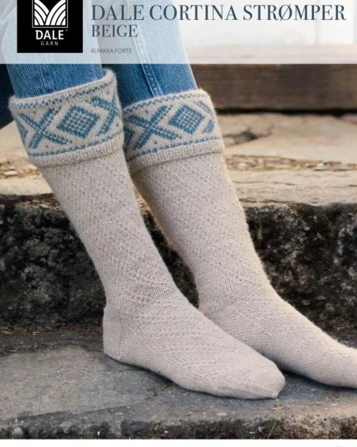 Cortina Strømper, Beige er et fantastisk strikkeprosjekt designet av Anne-Kirsti Espenes og Bitten Eriksen for Dale Garn. Disse sokkene er perfekte for alle strikkere som ønsker å lage noe vakkert og komfortabelt.