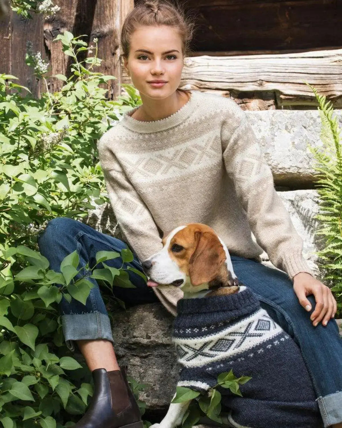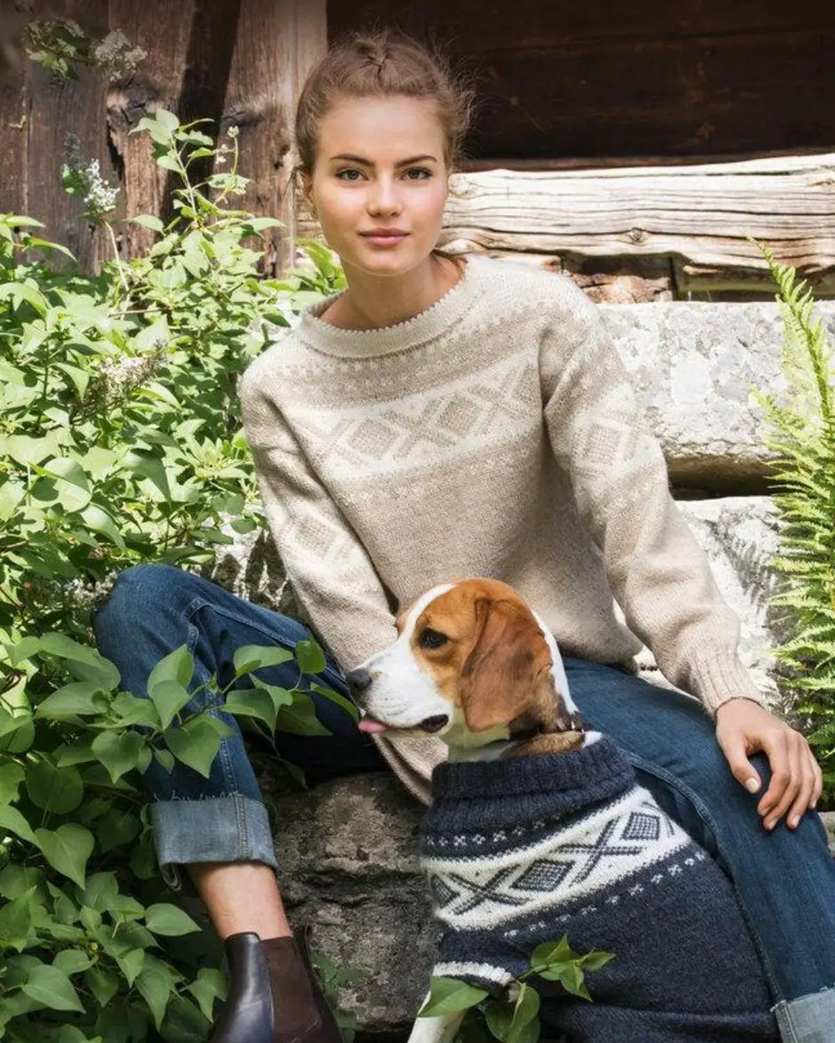 Cortina Unisex Genser i beige er en klassisk og stilren genser som passer til både menn og kvinner. Den er designet av Anne-Kirsti Espenes og Bitten Eriksen og er laget av den velkjente merket Dale Garn.
