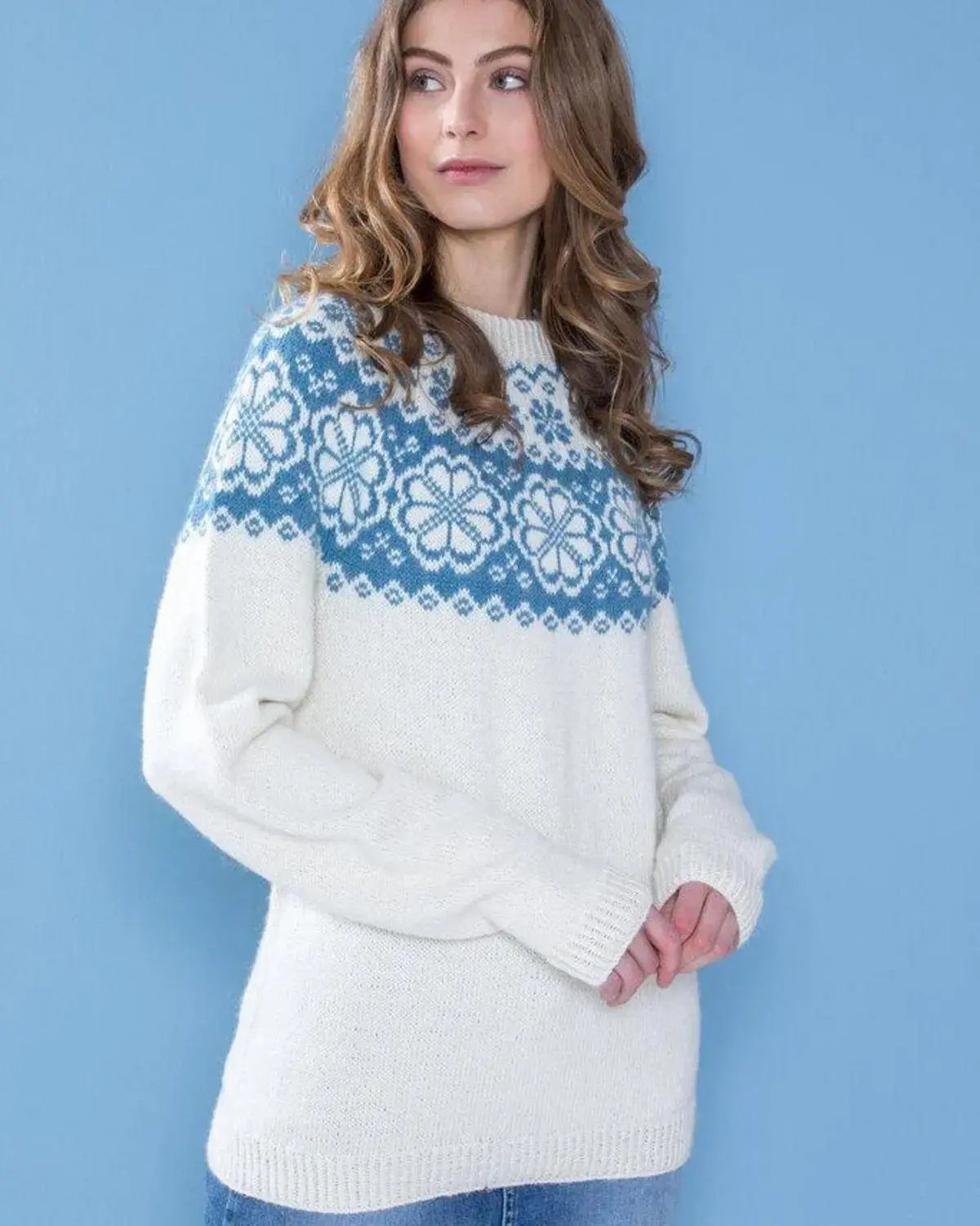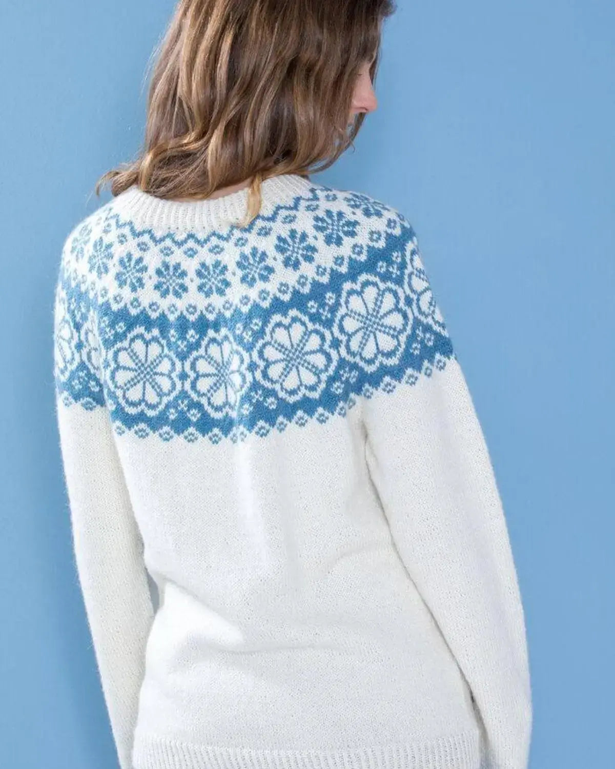 Q-Symre Genser er en klassisk og stilren genser fra Dale Garn. Den er designet av Ane Kydland Thomassen og er laget i naturlige og lyse denimfarger. Genseren er perfekt for både hverdagsbruk og mer formelle anledninger.