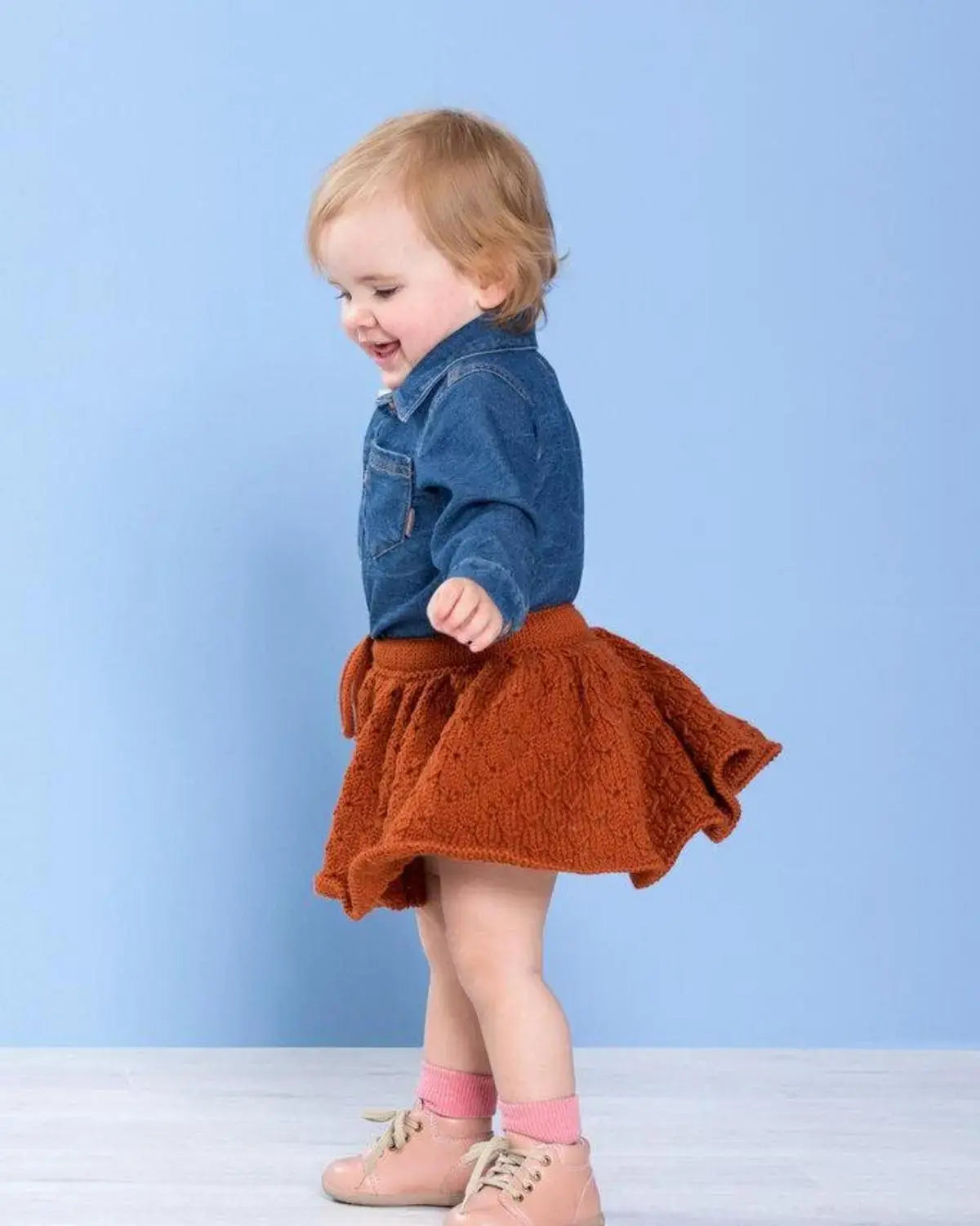 Sina Svingskjørt i Brent Kobber fra Dale Garn er et fantastisk design av Brit Frafjord Ørstavik. Dette skjørtet er håndlaget med stor oppmerksomhet på detaljer, fra det myke og luksuriøse materialet til de elegante mønstrene som pryder det. Skjørtet har en flatterende A-linje form som passer til alle kroppsformer, og den kobberfargede nyansen gir det en sofistikert og chic touch.