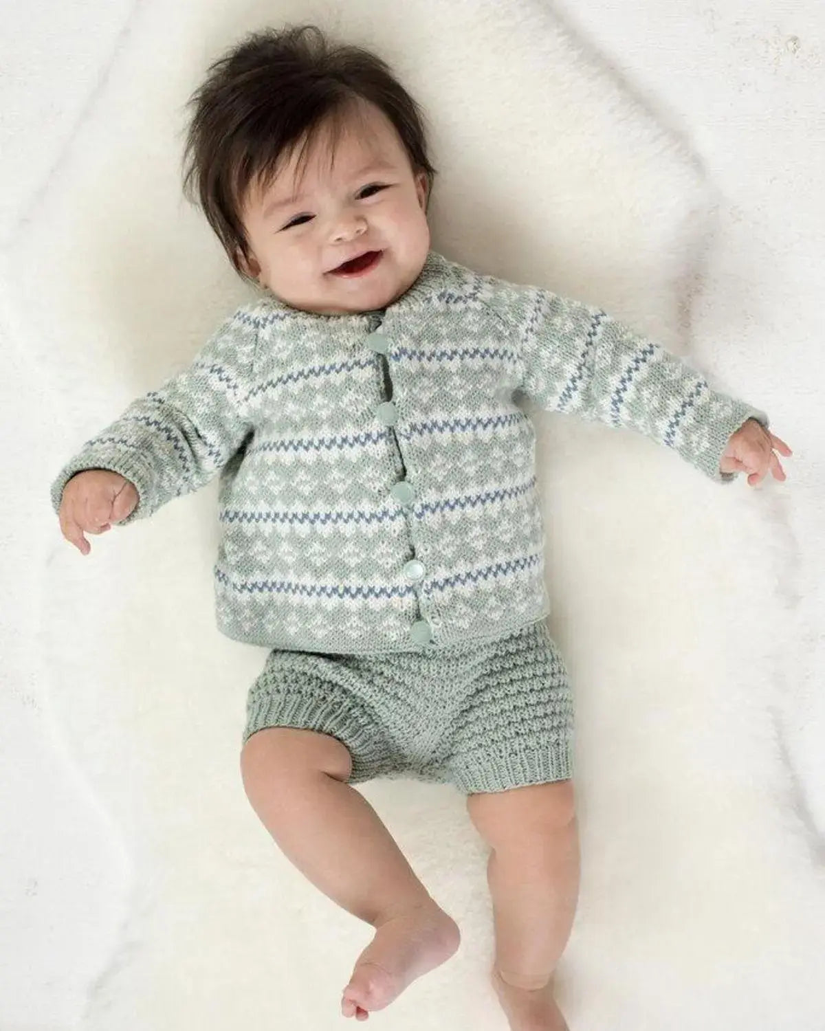 Enten du strikker dette settet som en gave eller for ditt eget barn, vil Smårolling Jakke, Kort Bukse og Lue, Lys Jade være et vellykket prosjekt. Med dette settet vil barnet ditt se både søtt og stilfullt ut, samtidig som det holder seg varmt og komfortabelt.